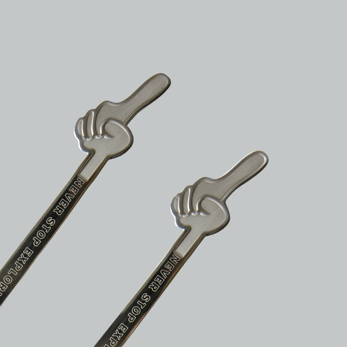 כפיות נירוסטה מותאמות אישית עם הסלוגן האייקוני Never Stop Exploring