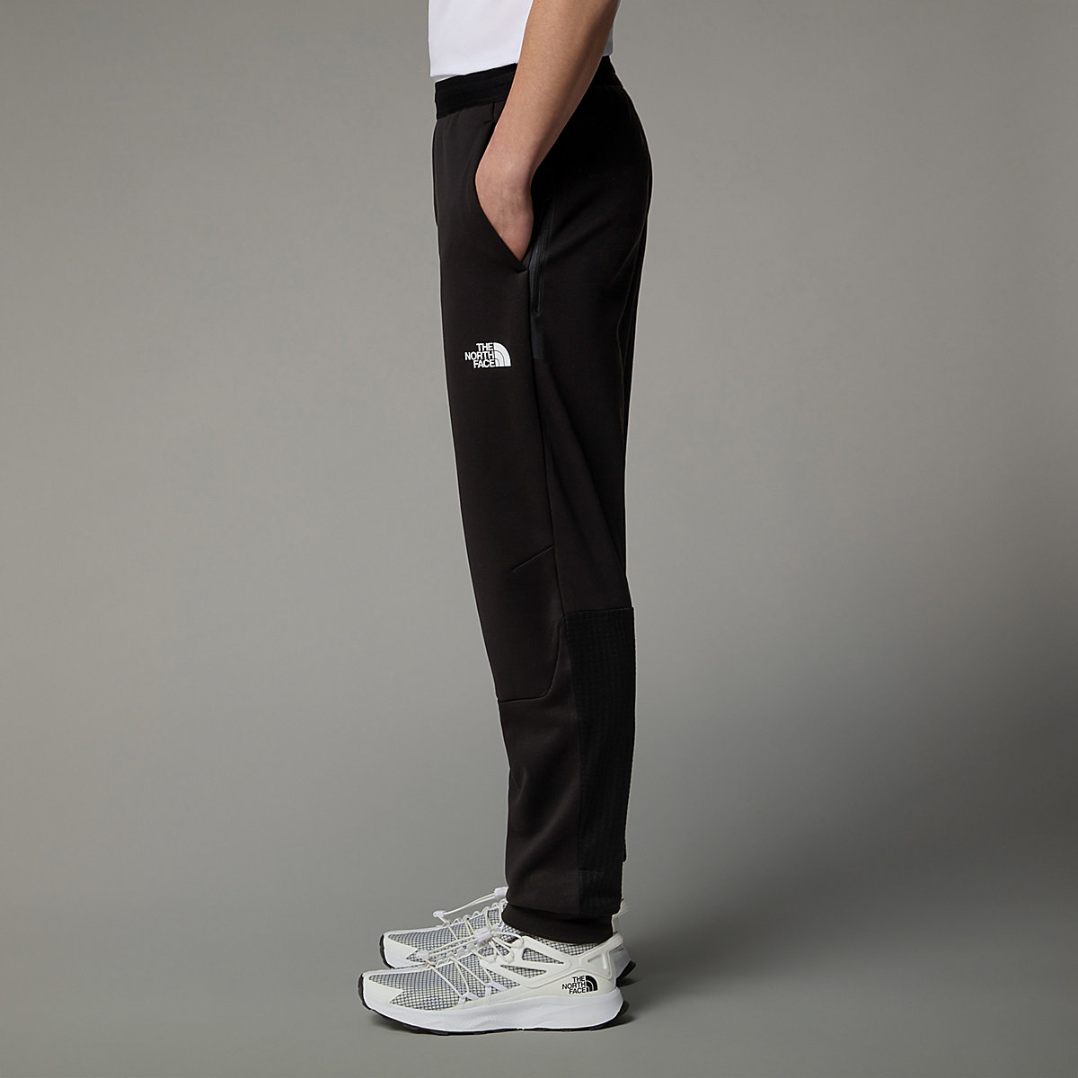 - לוגו על הירך השמאלית; לוגו Mountain Athletics על השוק הימני